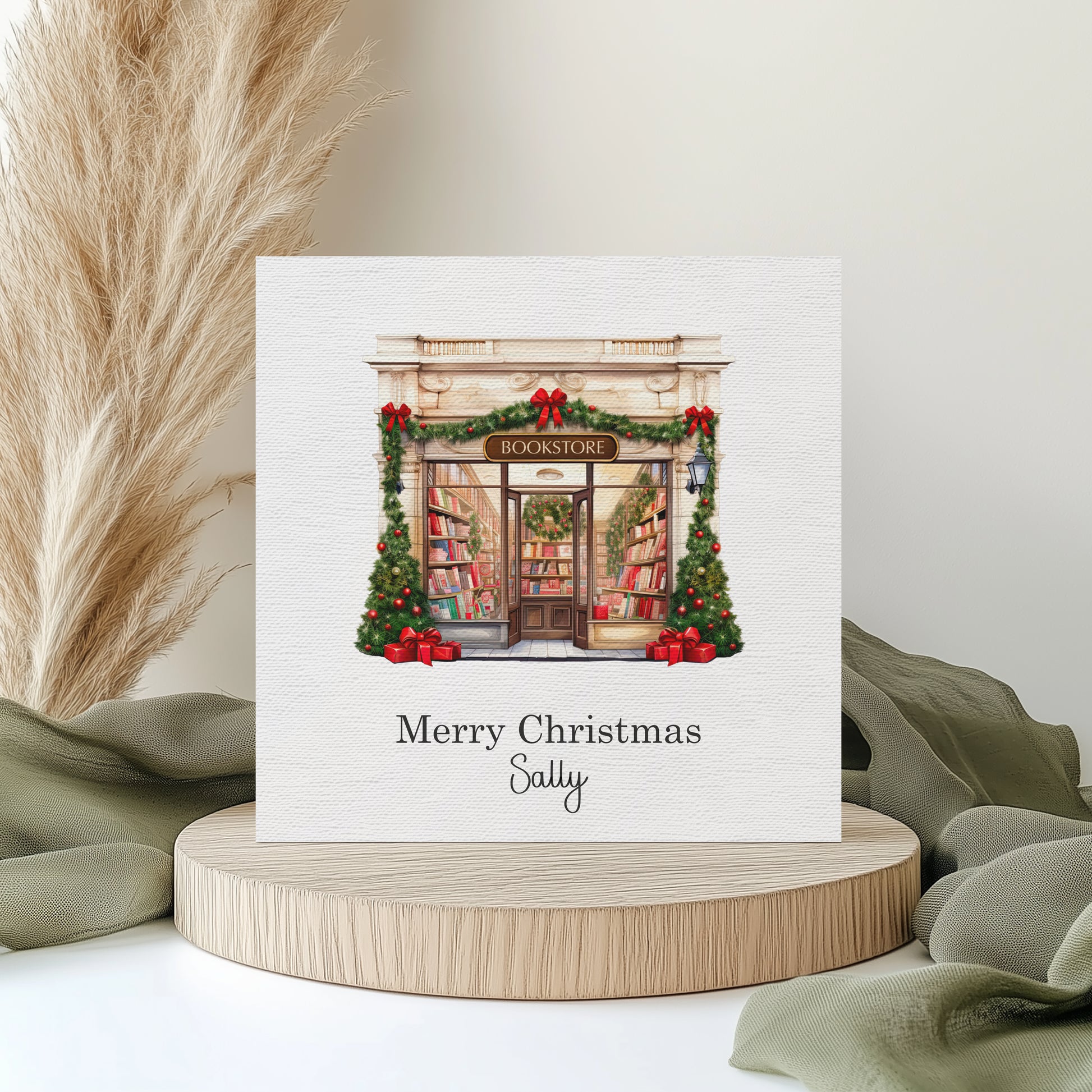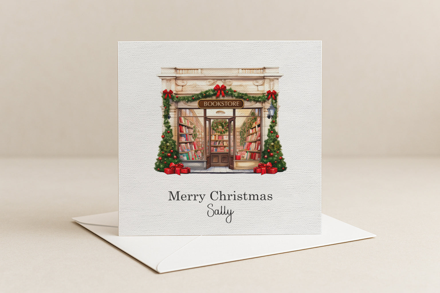 Celebrate your friend or family this christmas with this personalised Christmas Bookshop card, perfect for book lovers and adding a personal touch to your gifting this year.
