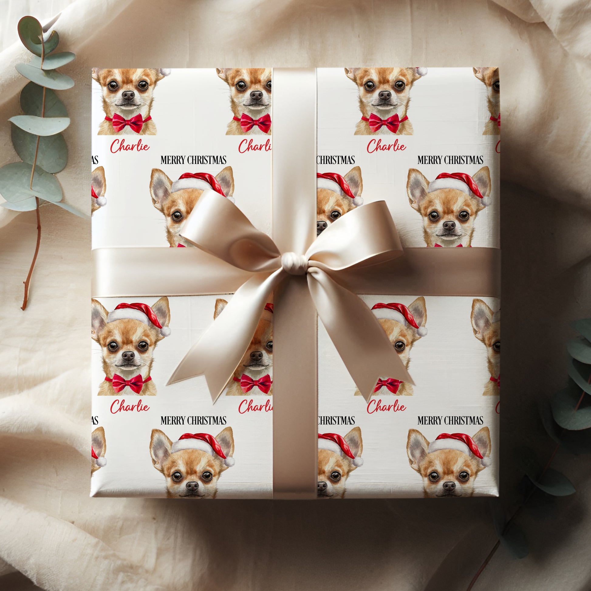 Make your gifting extra special with this personalised Chihuahua Christmas wrapping paper.