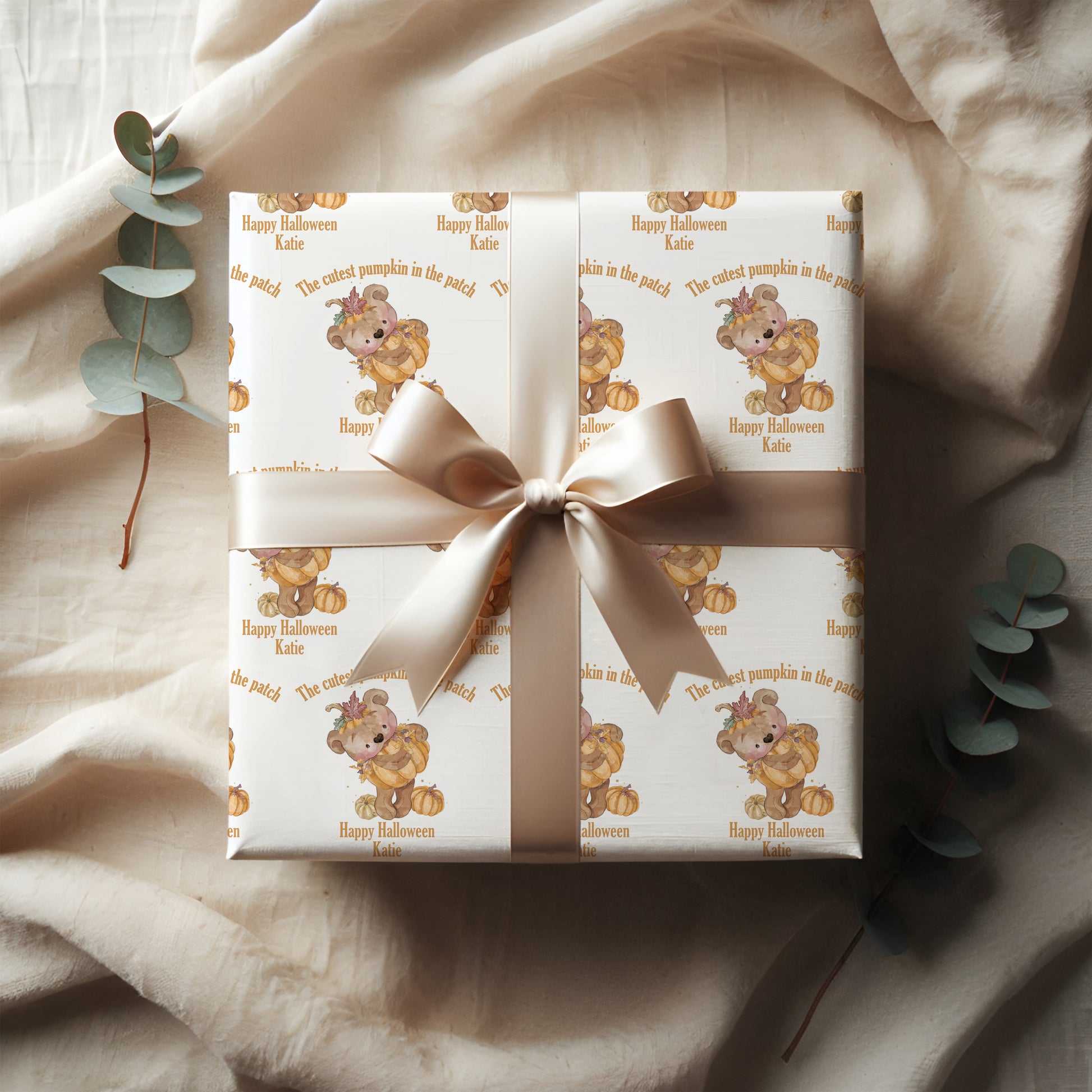 Cute Halloween Pumpkin Wrapping Paper, 1st Halloween gift wrap, custom gift wrap, Wrapping paper, Baby Bear Pumpkin Present Wrap