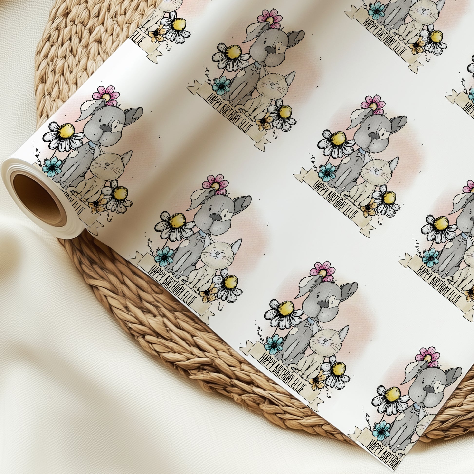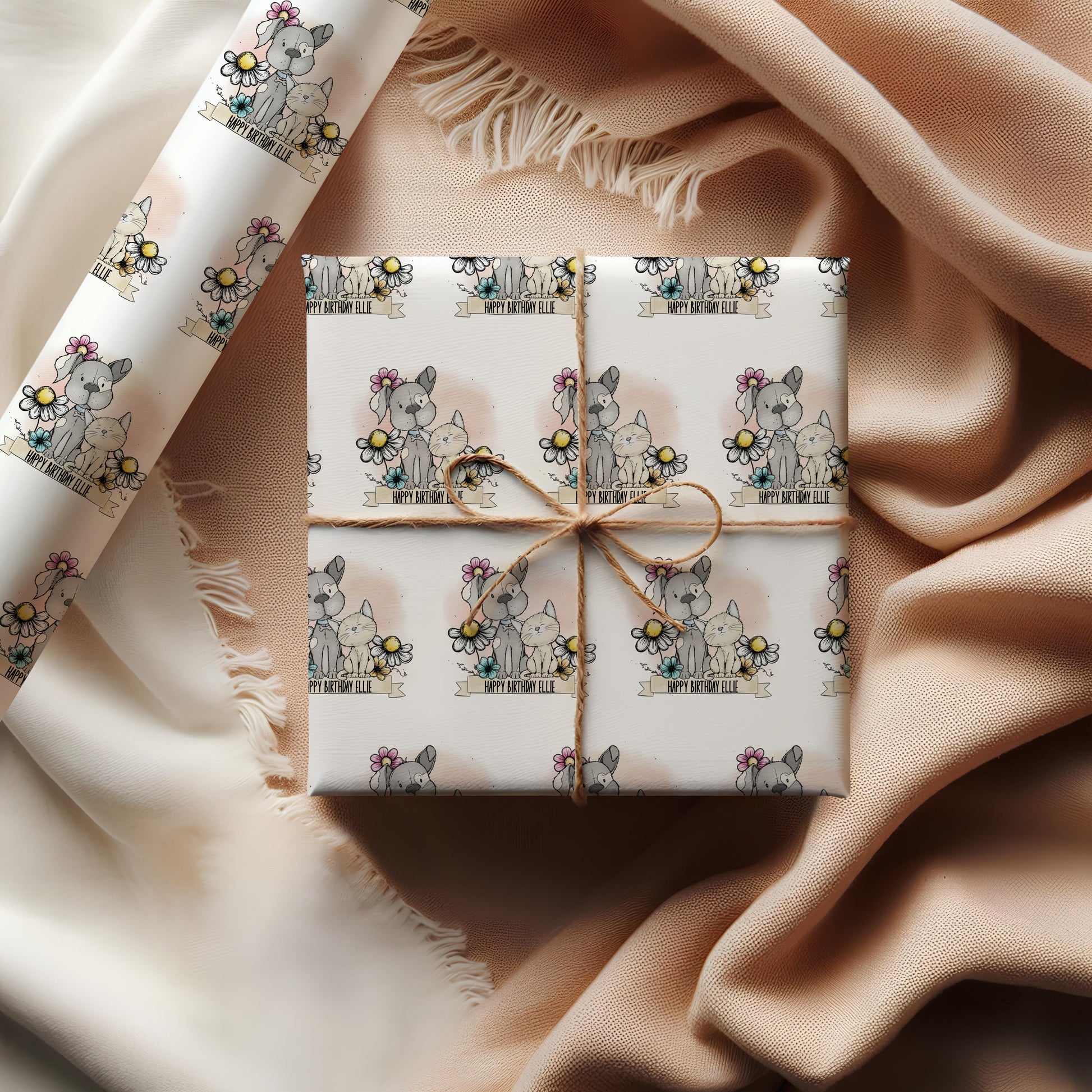 Dog and Cat Birthday Wrapping Paper, Custom Gift Wrap, Personalised Birthday Wrap for her, Birthday Gift Wrap, Children's Birthday,
