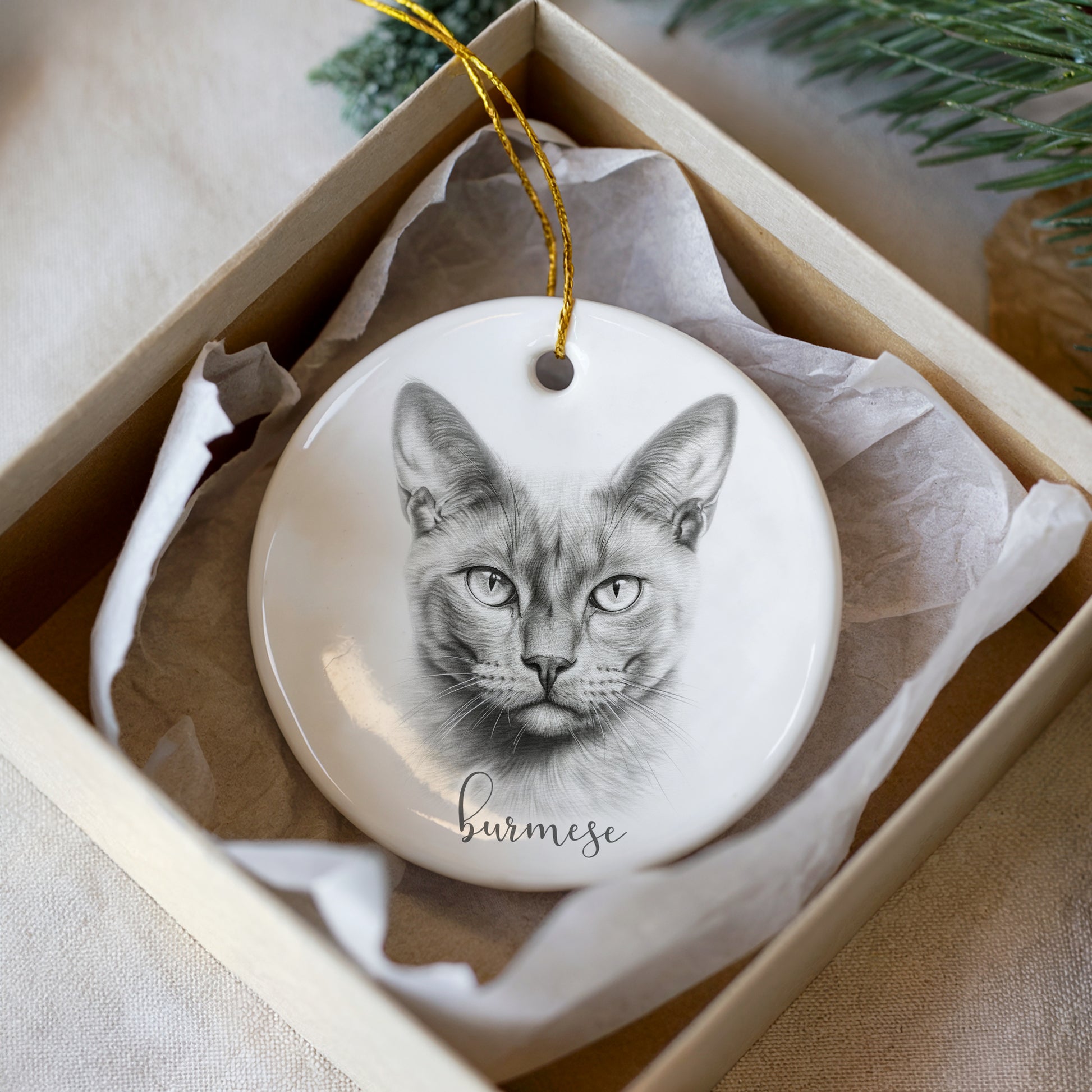 Personalised Burmese cat Christmas bauble, Burmese cat ceramic bauble, cat lovers Christmas gift, Burmese cat gift