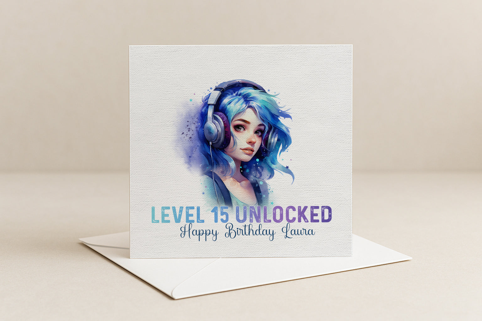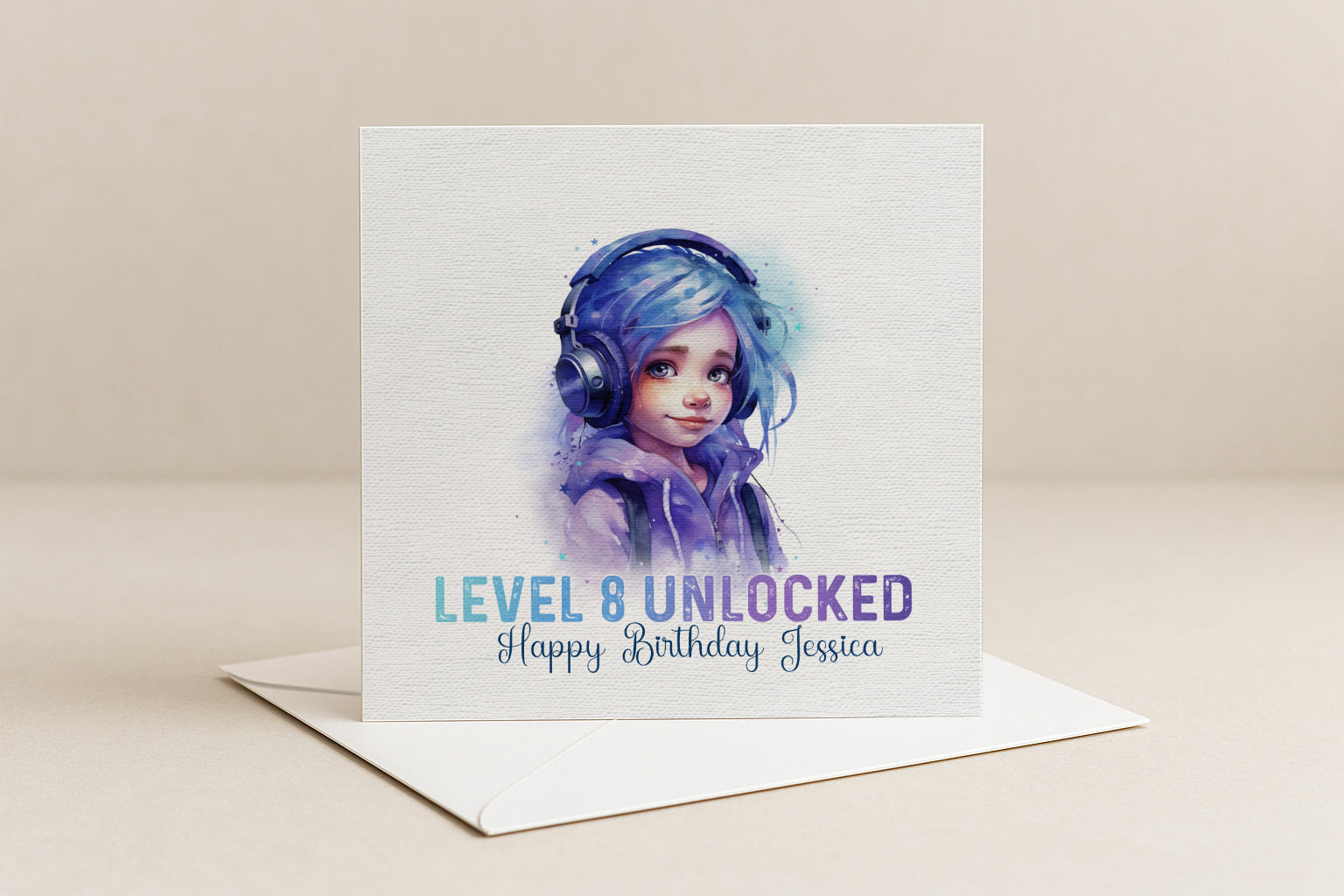 Personalised Birthday card for her, gamer girl birthday card, teenage girl birthday card, gamer party, gamer birthday card, birthday for her
