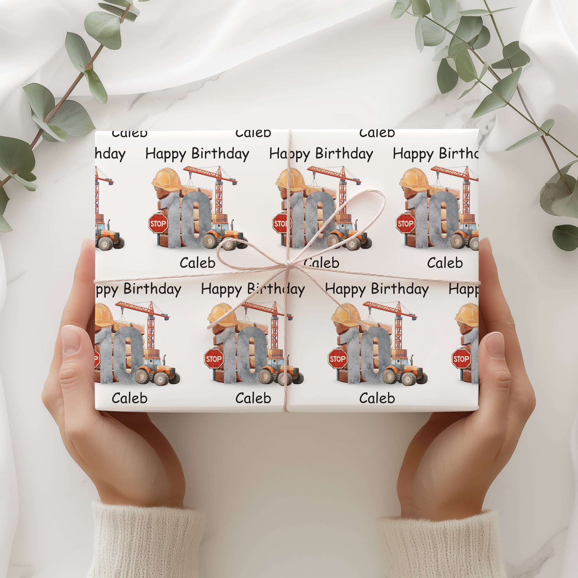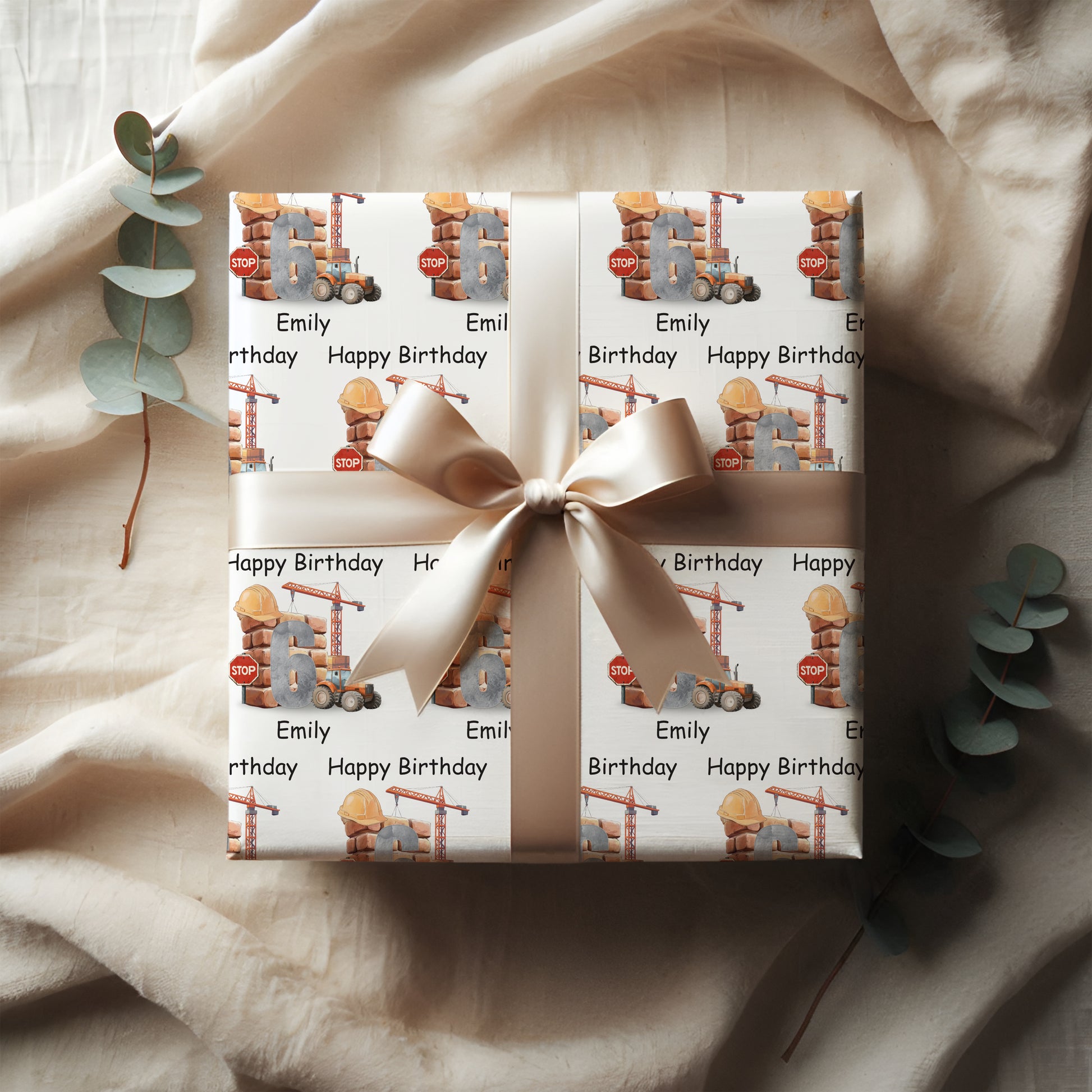 Personalised Kids Construction Theme Wrapping Paper, Birthday gift wrap, Builder gift wrap, Wrapping paper with name, Construction Gift Wrap