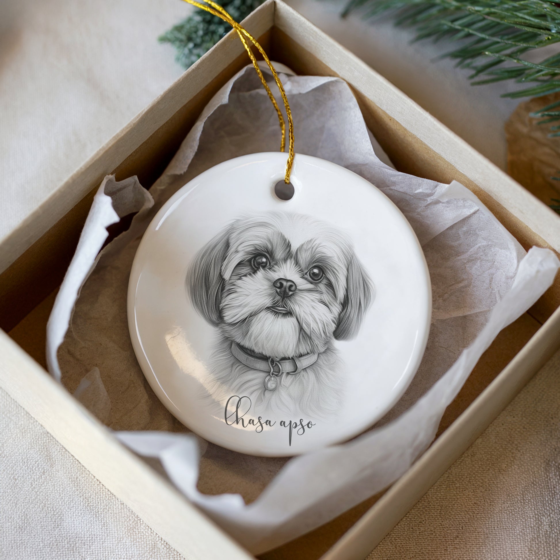 This beautiful 7cm white gloss finish ceramic bauble will make the perfect memorable keepsake this year. A great addition to the Christmas tree and include your Lhasa Apso!