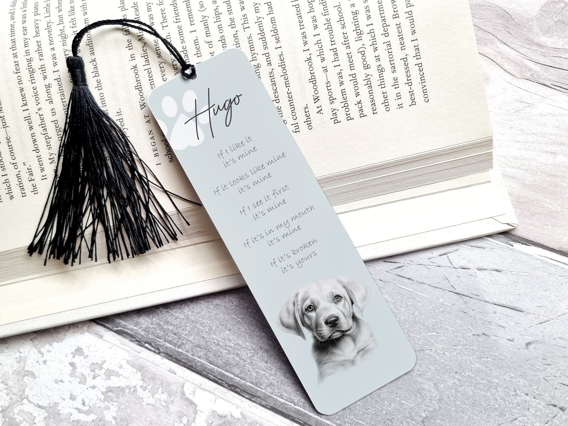 Aluminium bookmark personalised with any name of your choice and the option of the puppy or adult Labrador design.