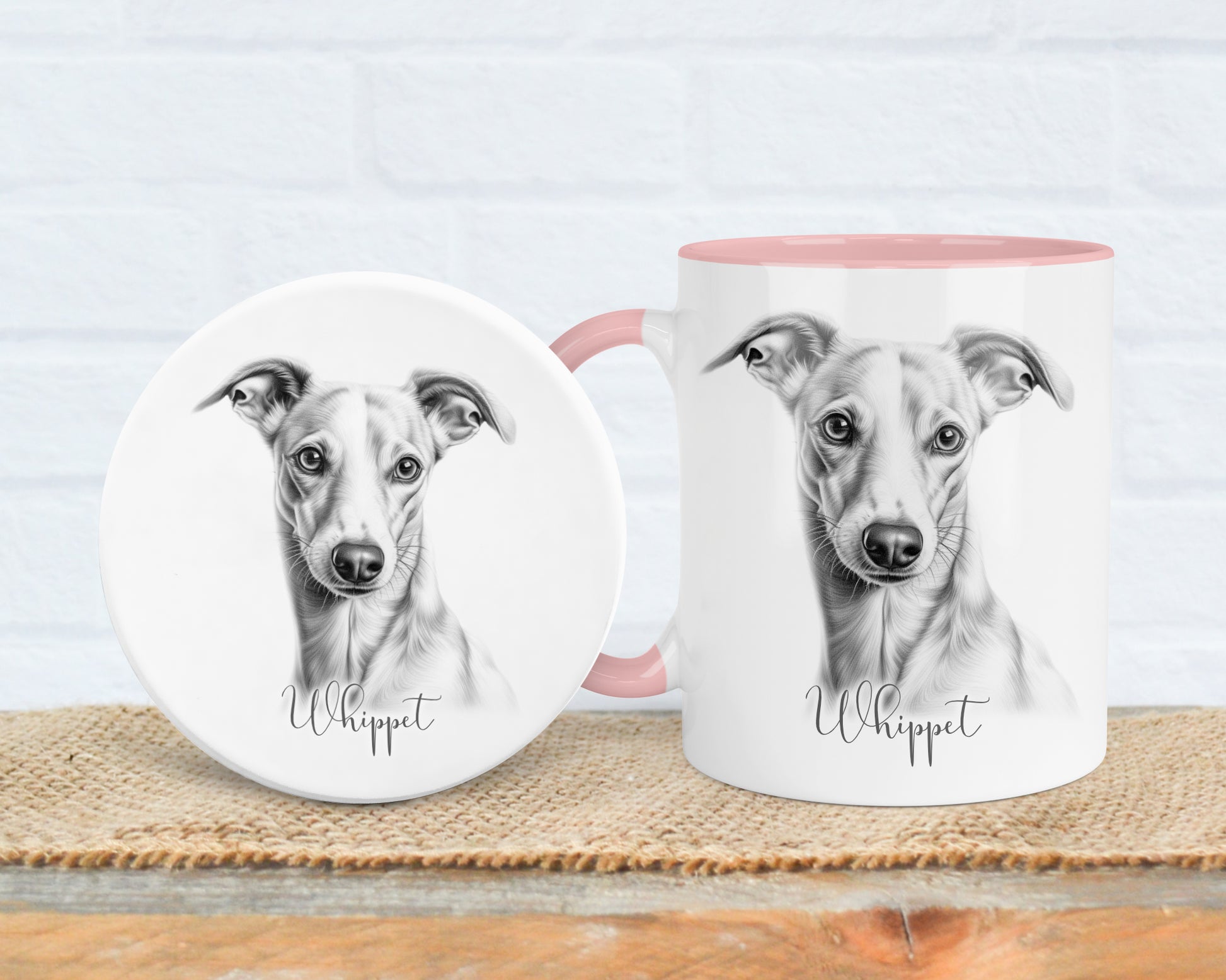 Whippet Mug, Personalised dog breed mug, Whippet gift, Whippet mug, 11oz ceramic mug, dog lover, Whippet Mug and Coaster gift set